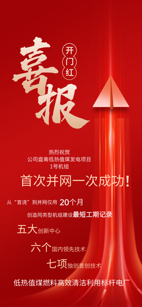 重大喜讯!公司盘南低热值煤发电项目1号机组首次并网一次成功! | ||||||